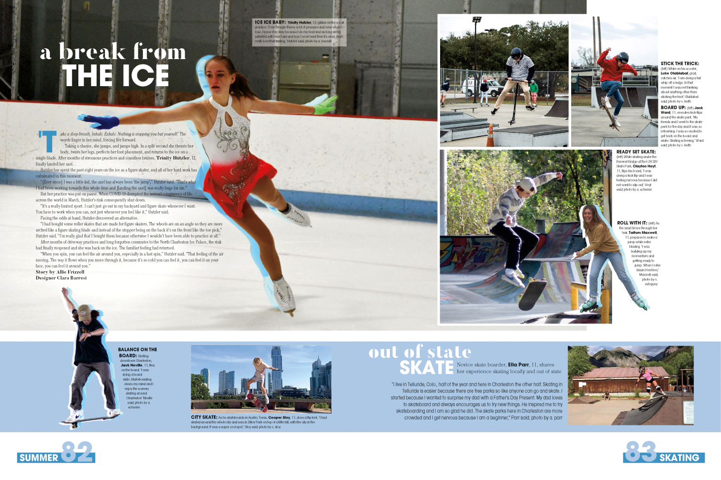 Even in the pandemic, many students and families found safe ways to travel, which is exactly what was covered in this summer spread. While your yearbook staff can’t travel alongside every member of the school, vacation photos are some of the easiest to have submitted because many people already take photos to remember the places they go and the people they visit during summer.